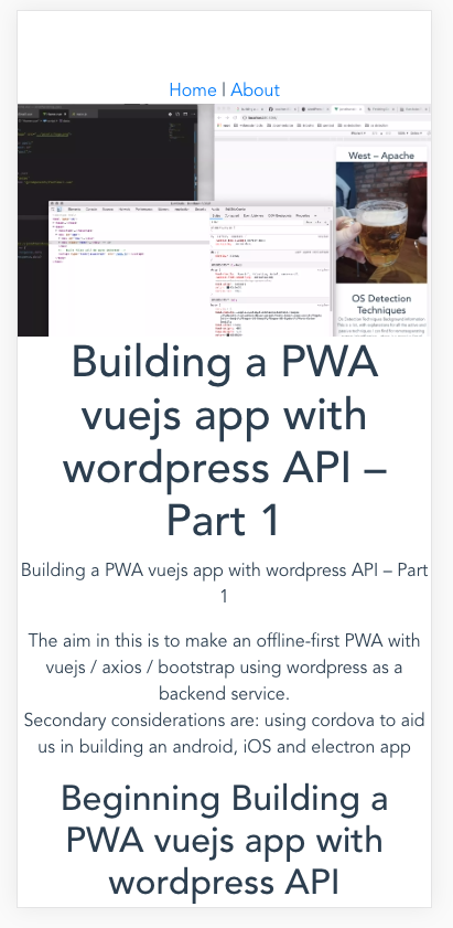 Continuing on fom Part1, where we made a (very) basic vuejs app to fetch data from a wordpress API, we will move on and in this tutorial we will set up some routes and create a basic ‘single’ page to show the content from a wordpress post