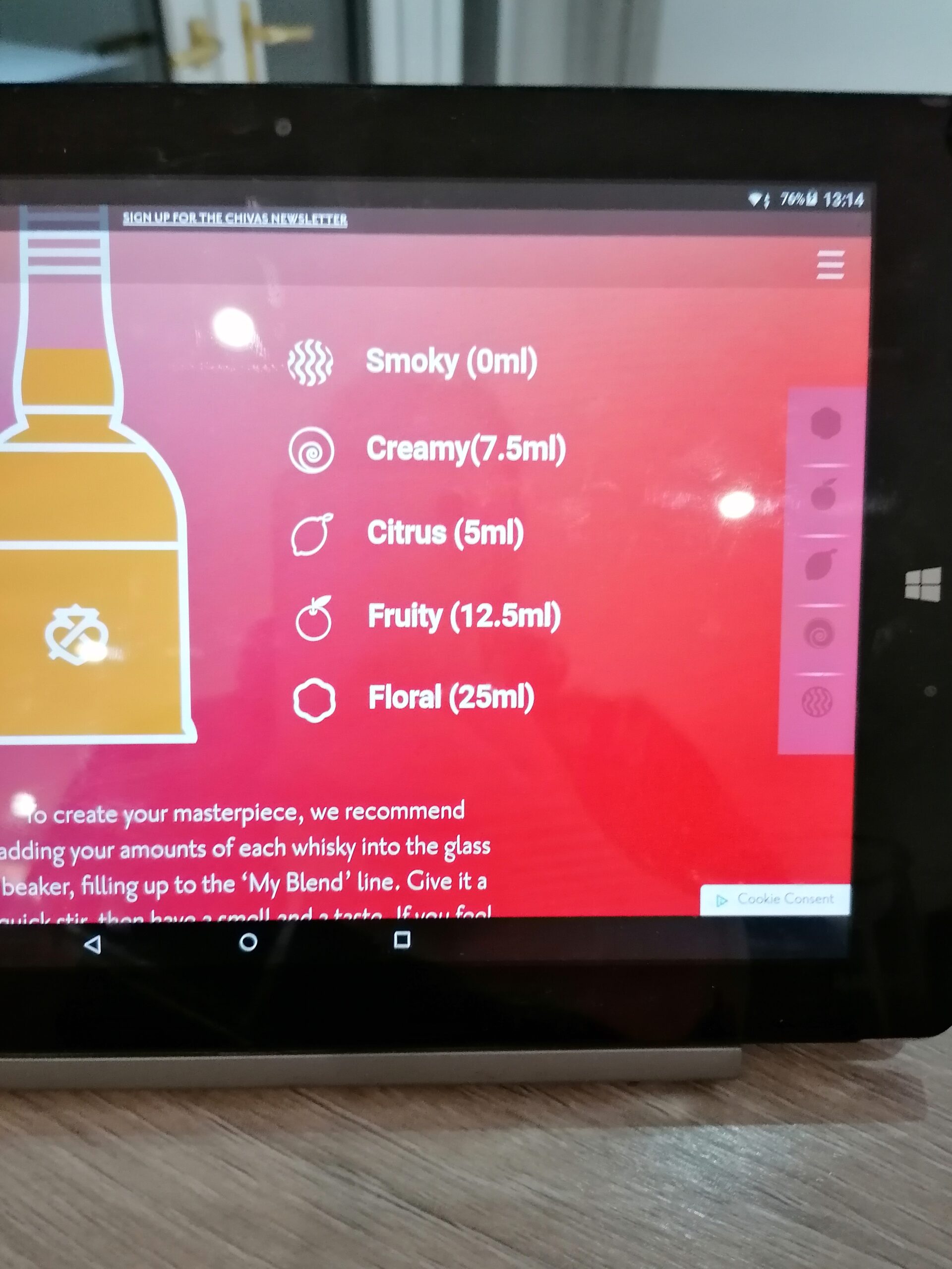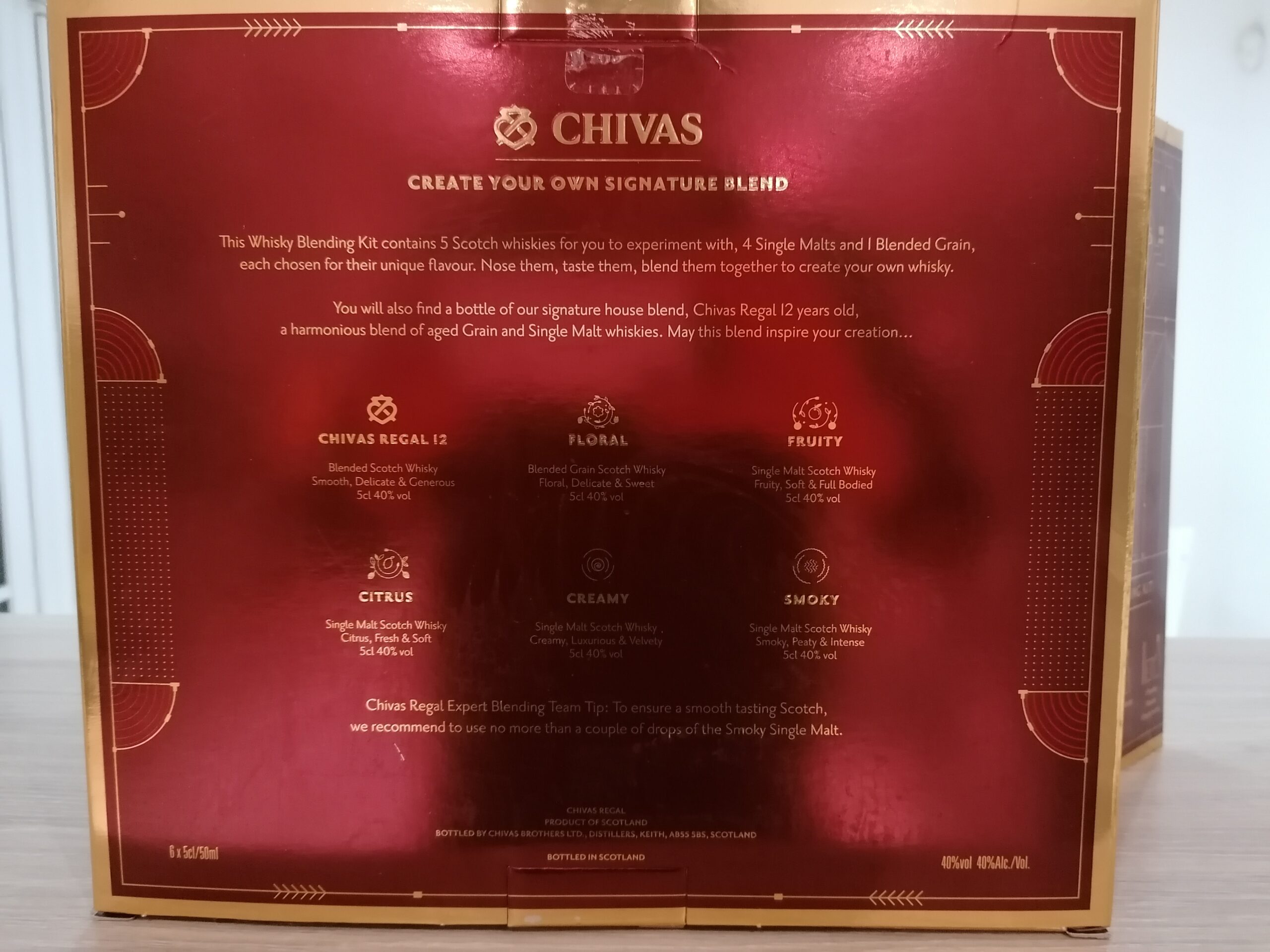 After tasting each bottle (and comparing to a few other bottles) and following along with the chivas website I had a blend recipe.