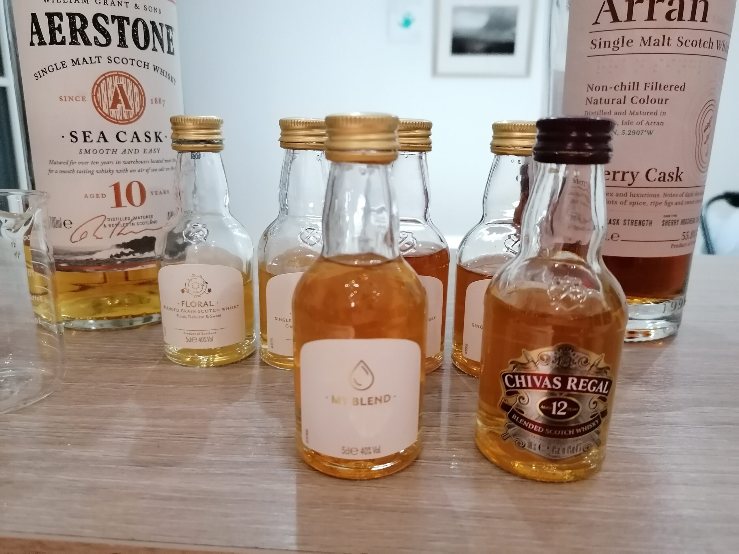 For Christmas I got a ‘blend your own whisky’ kit. It contained 7 bottles (5cl) with different whisky inside in order to create your own blend.