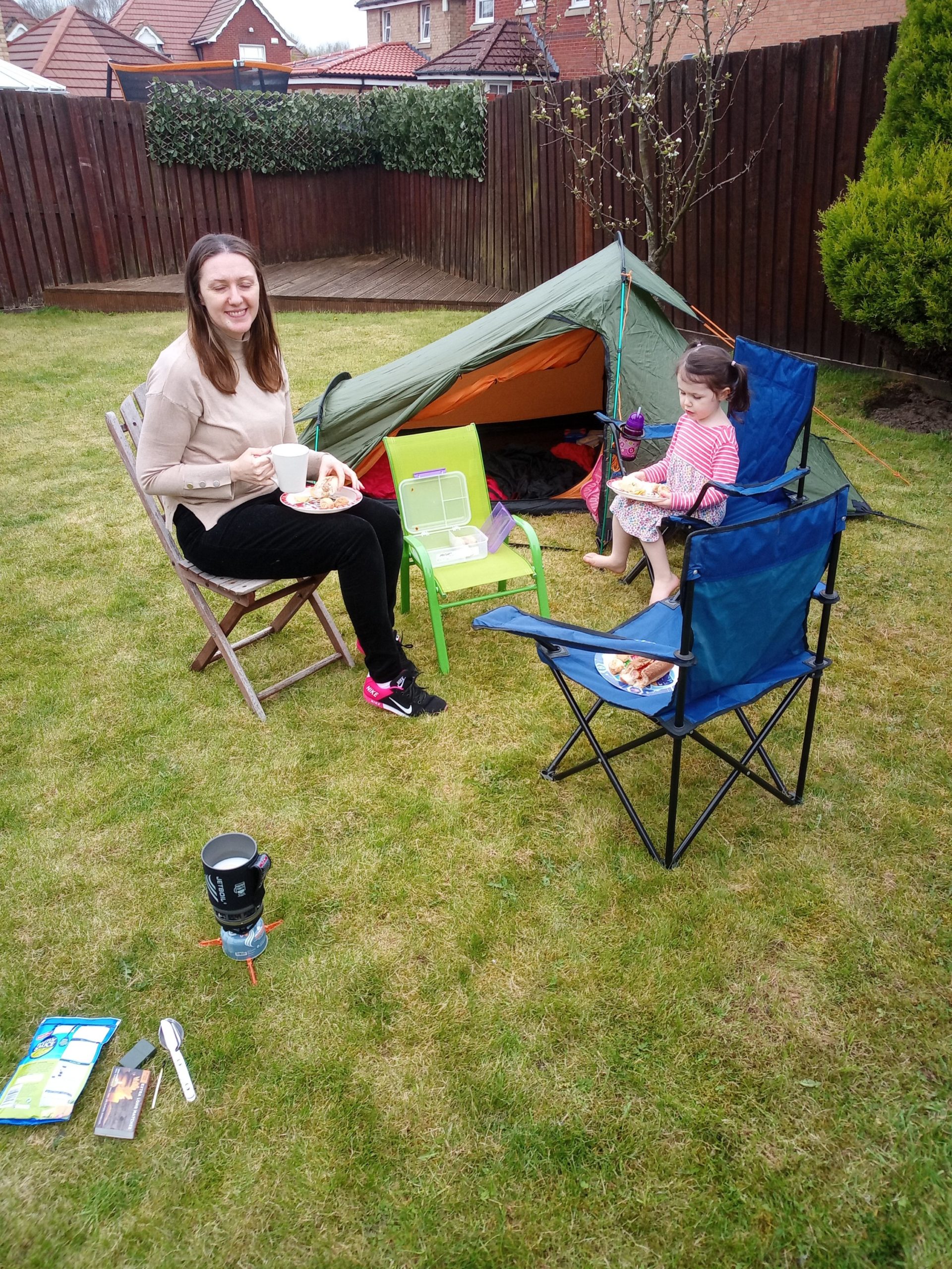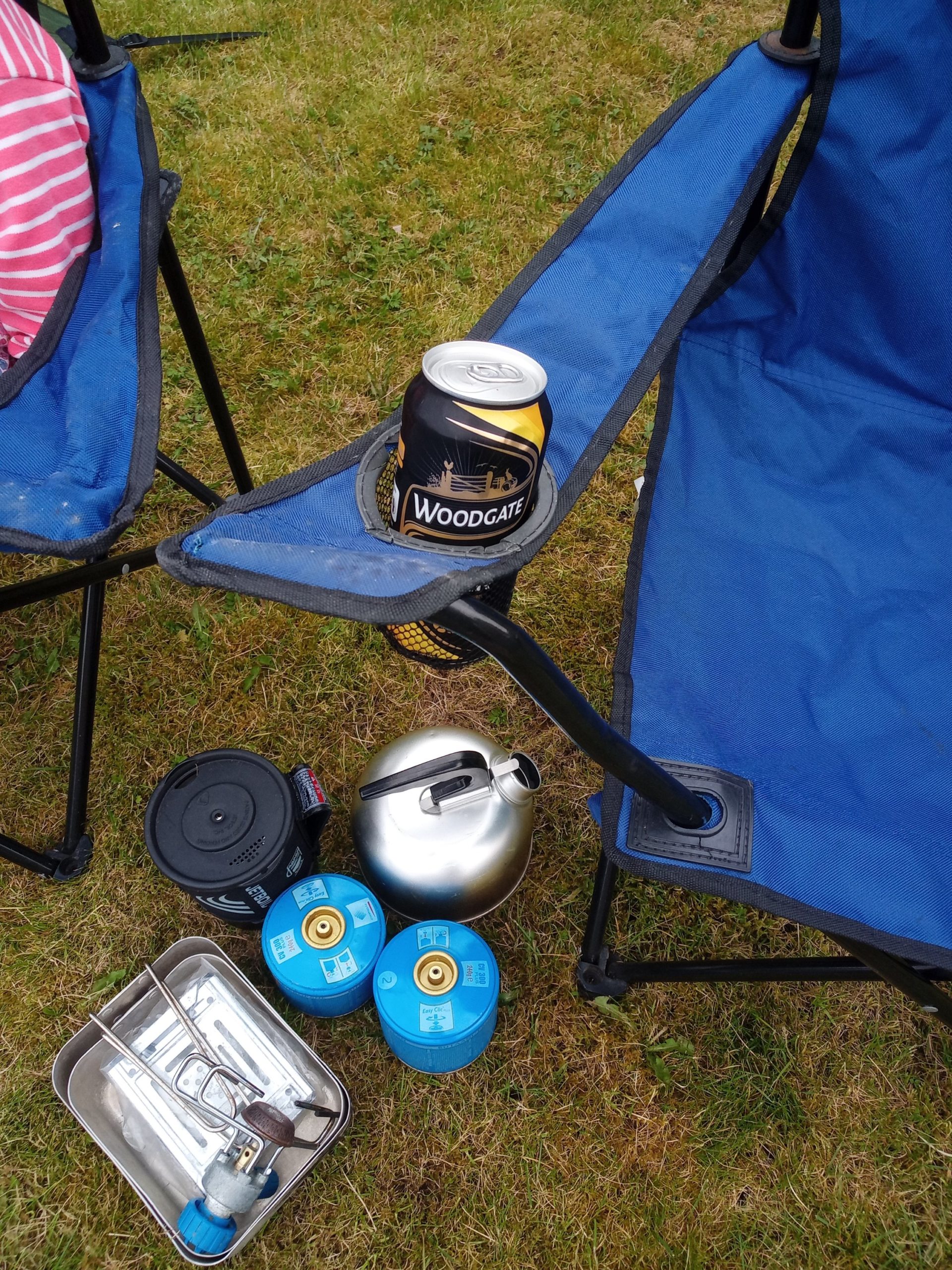 I got the camping chairs from the shed and a can of cider (and a bottle of juice) for the beer-holders