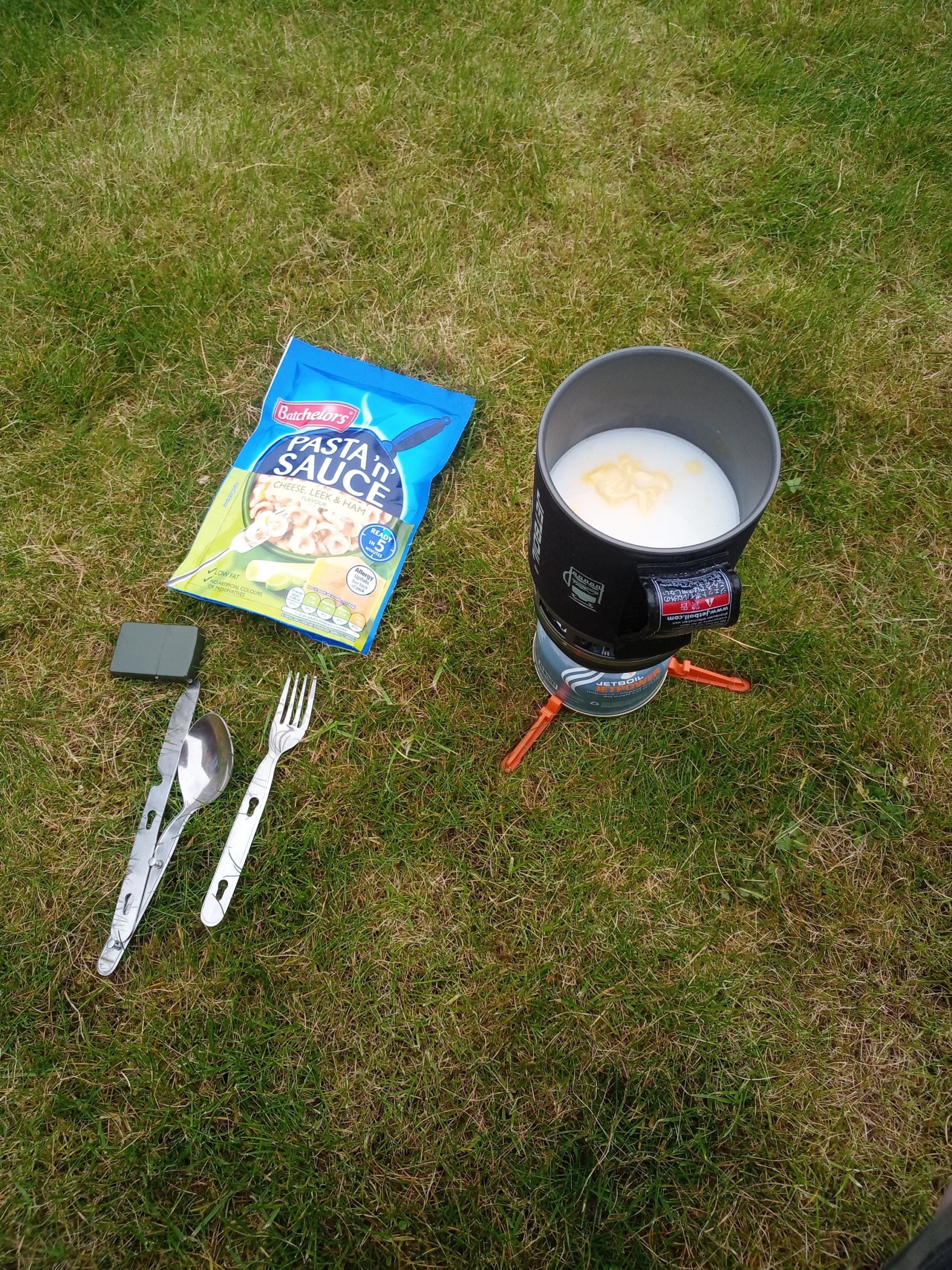 I got the jetboil out and some space-pasta and cooked it (might as well by this point)