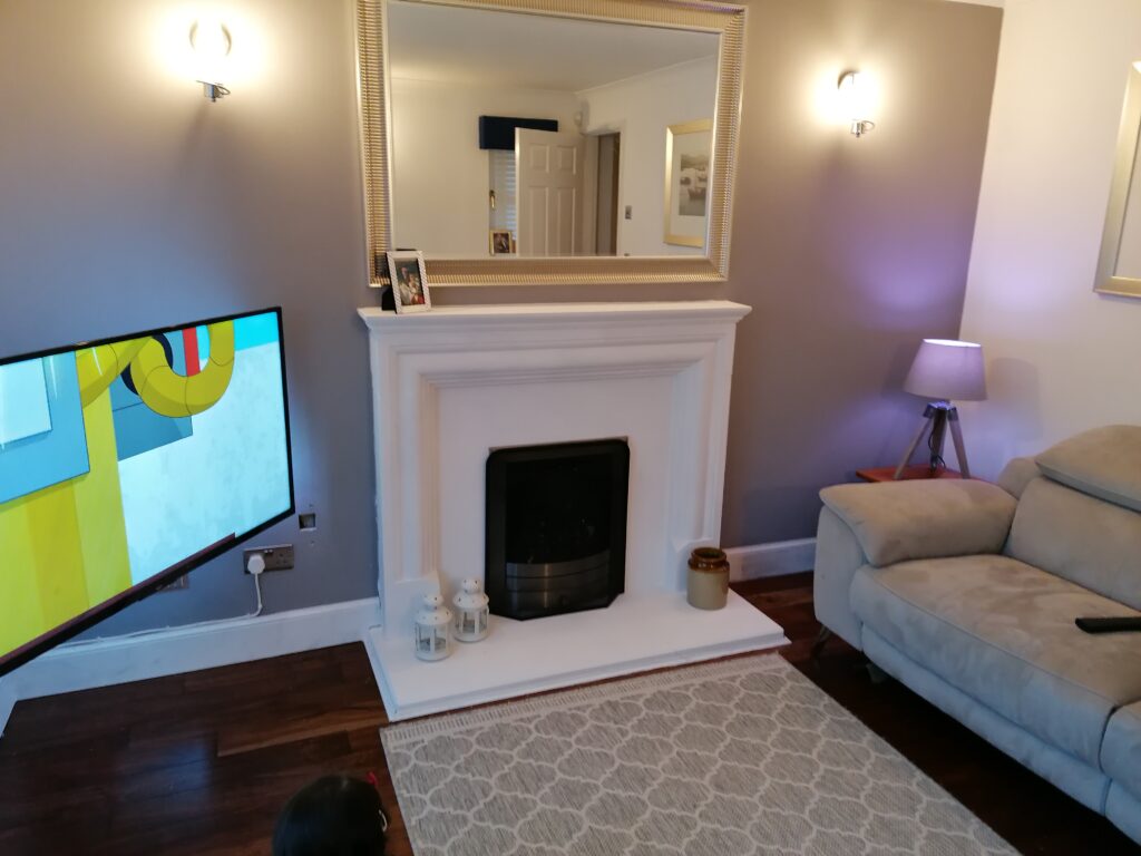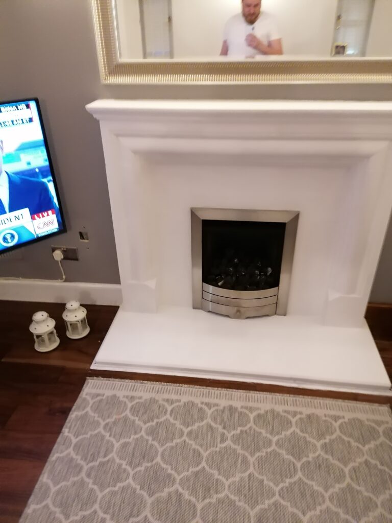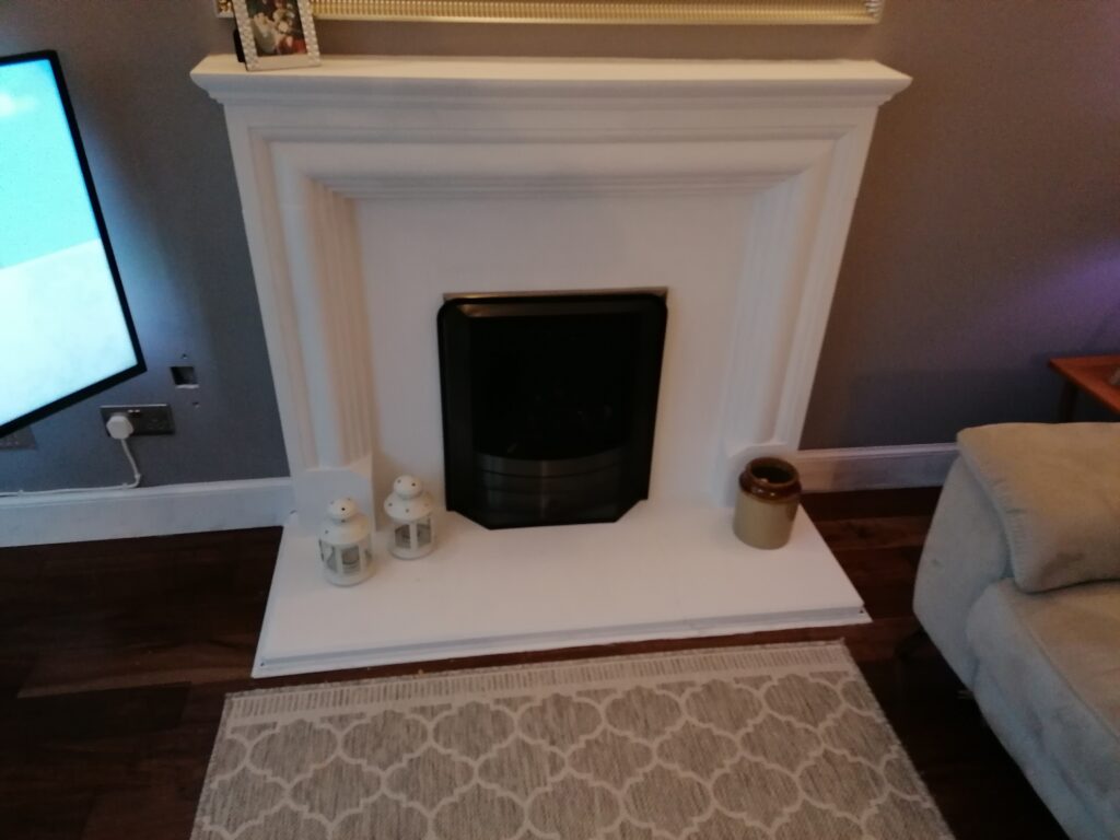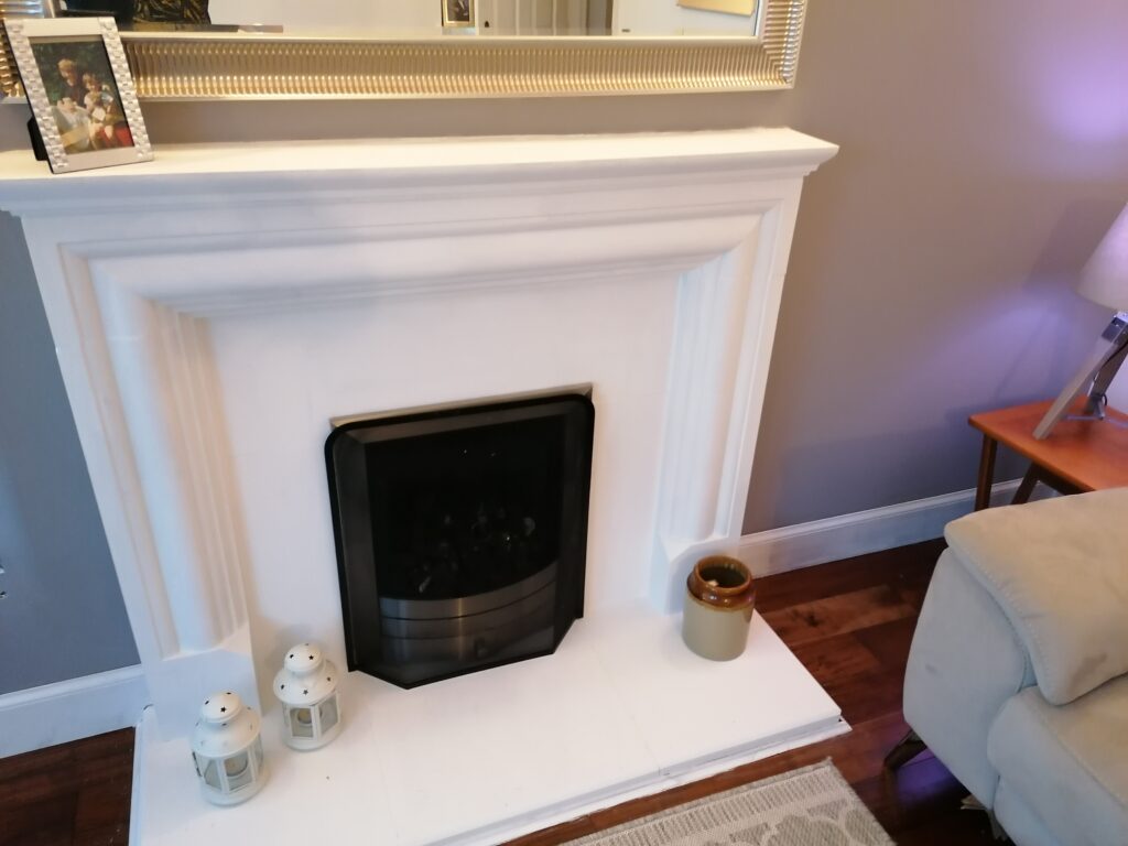 Our fireplace is made from fake stone – almost concrete like, but trying to look and feel like sandstone. Its very nice, but it’s a yellow colour. We decided to paint it, and after a little research found that chalk paint would be best, here are the results