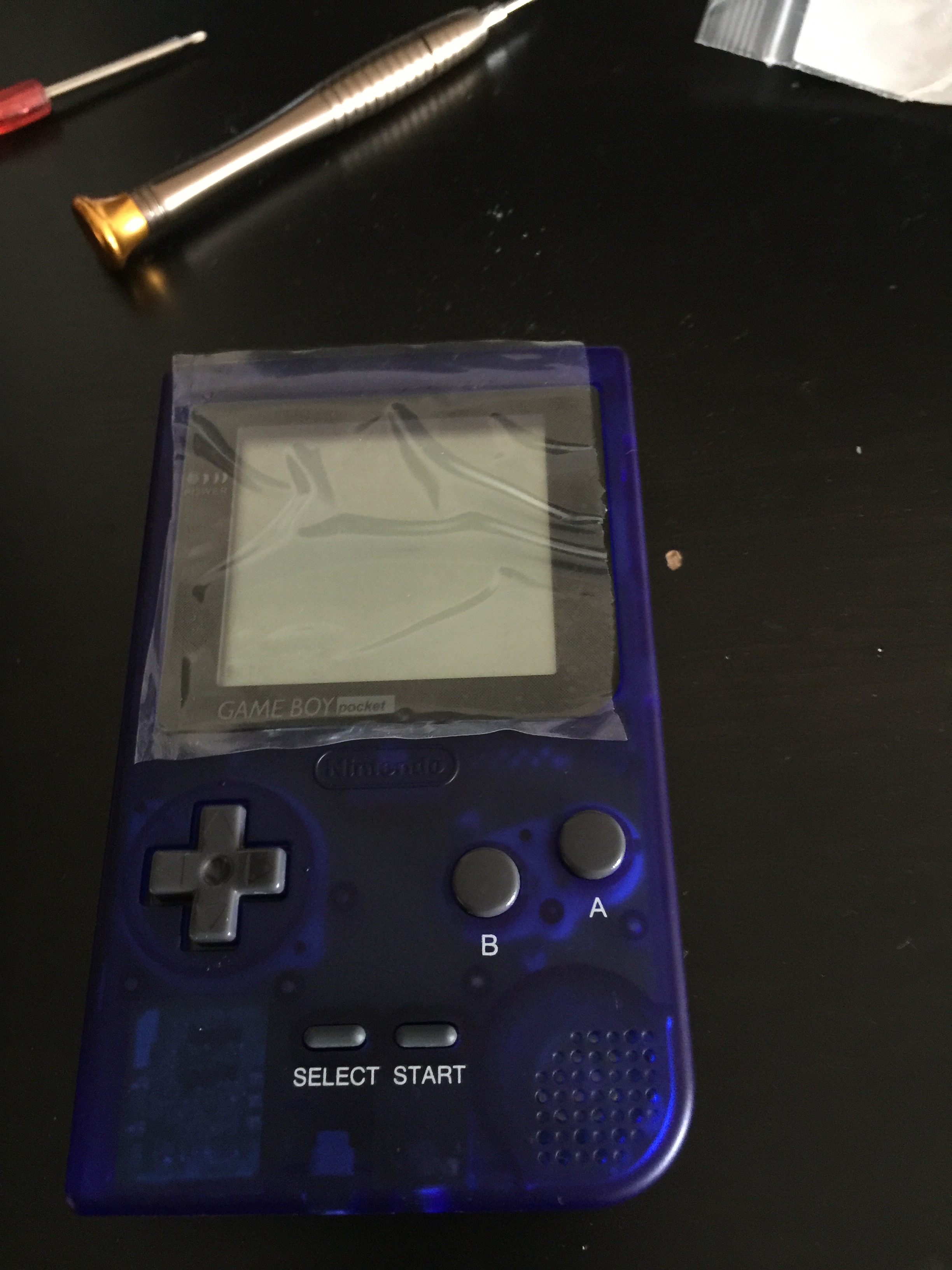 Here is the modified gameboy pocket assembled with the new glass screen installed!