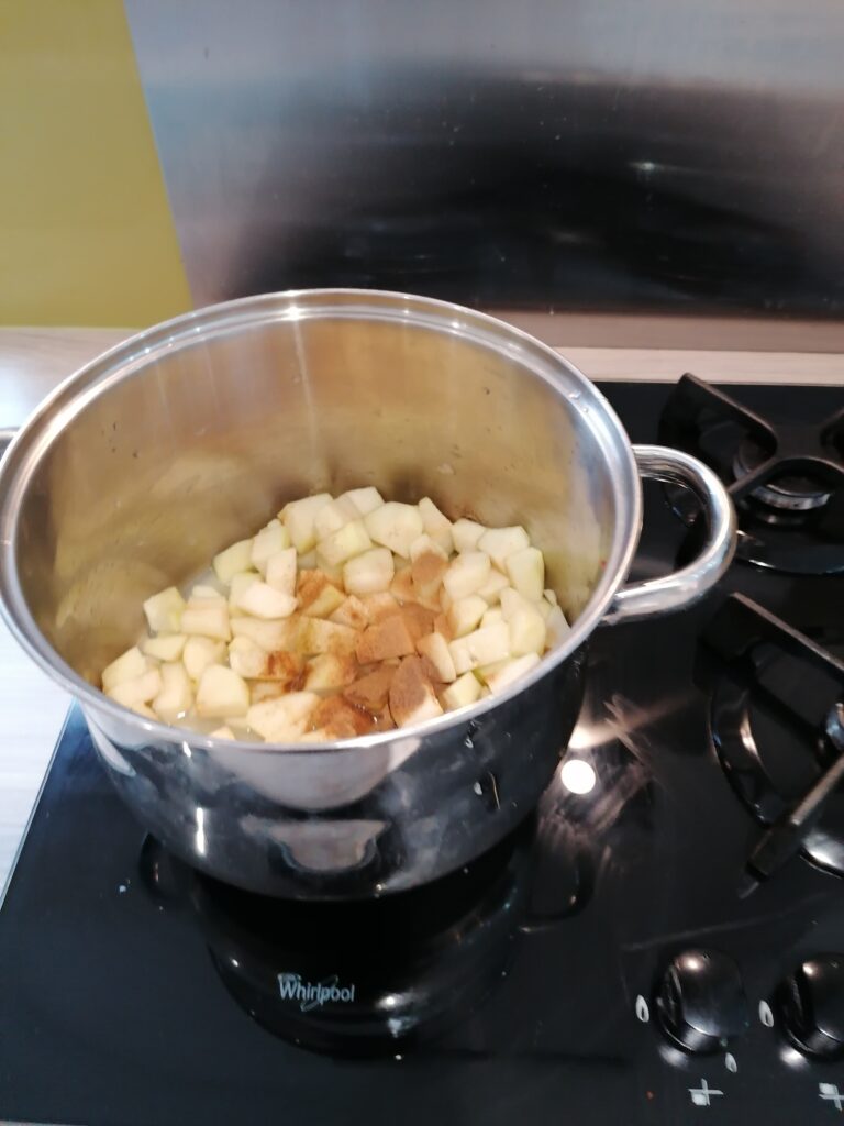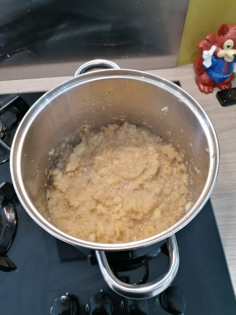 the recipie said to mash the pears – the masher was never going to work (the pears had been ripening for 2 weeks, but could have done with another) so we used the hand blender to pulp them instead.