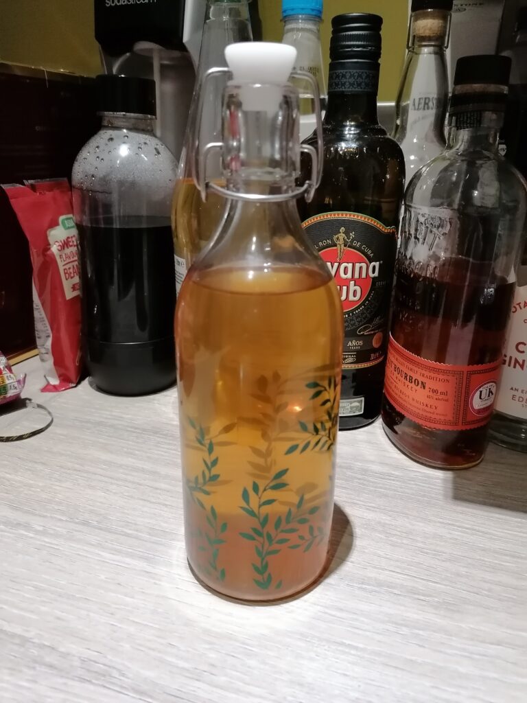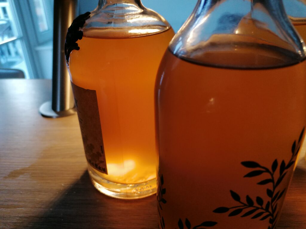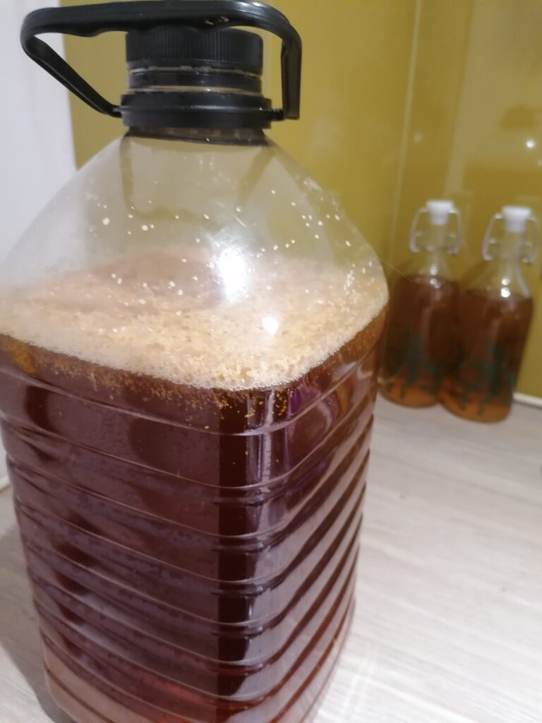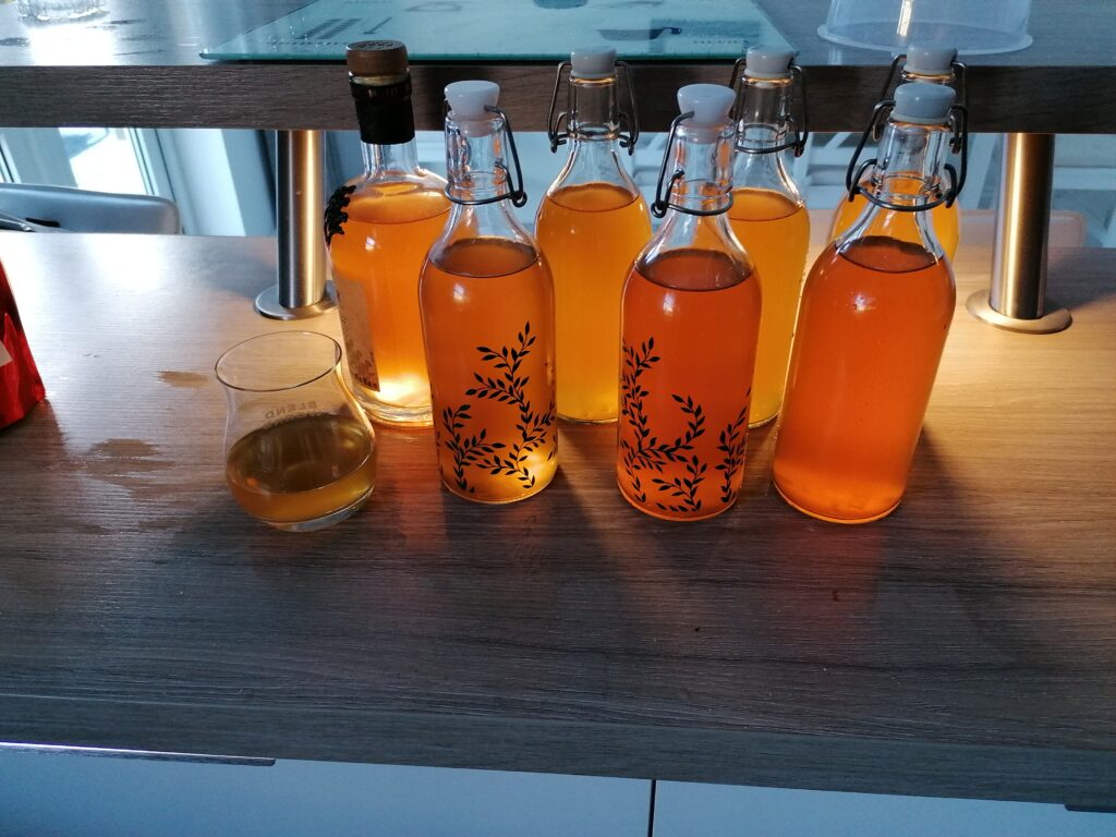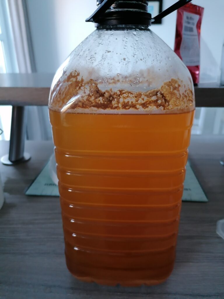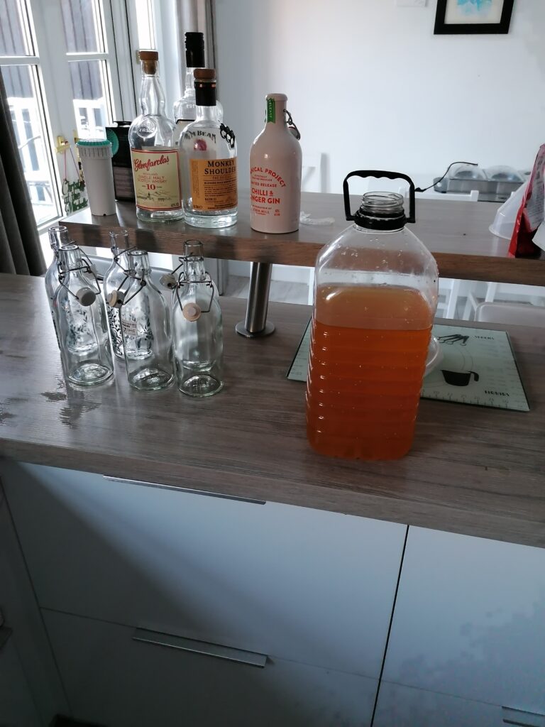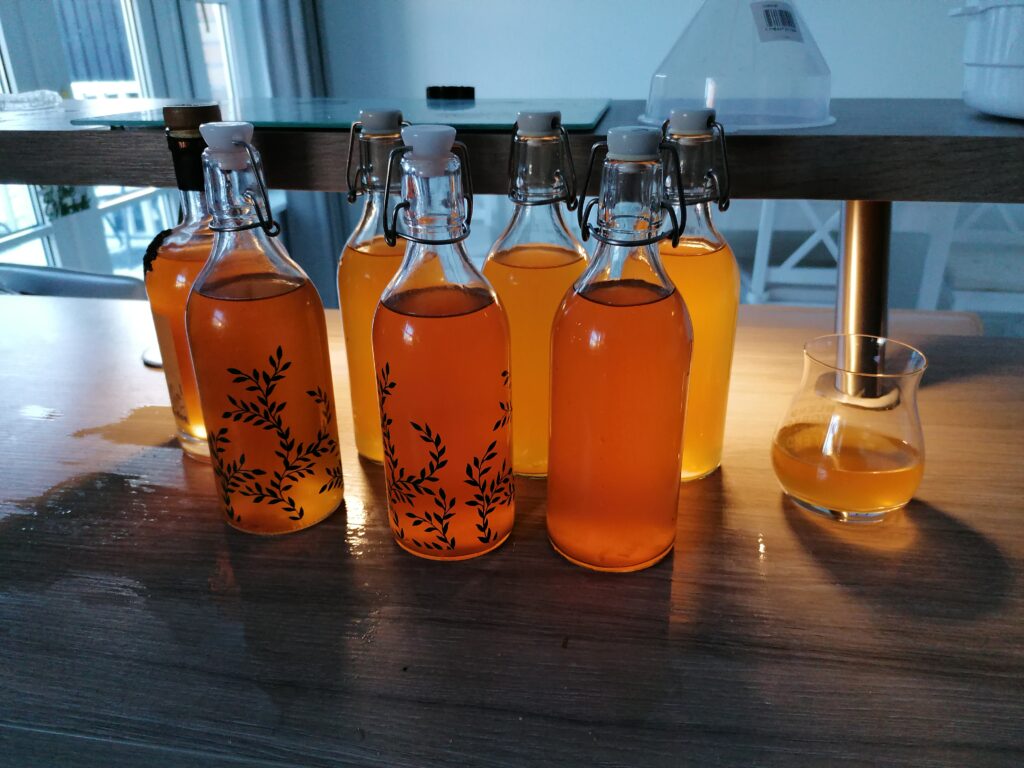 It was very easy to make, just add 5L apple juice to a container, add some sugar (I used an online calculator, but basically poured in 3/4 of a bag of sugar and checked with the hydrometer