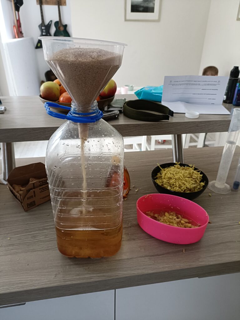 fill a clean, sterilised 5l bottle half full of water.