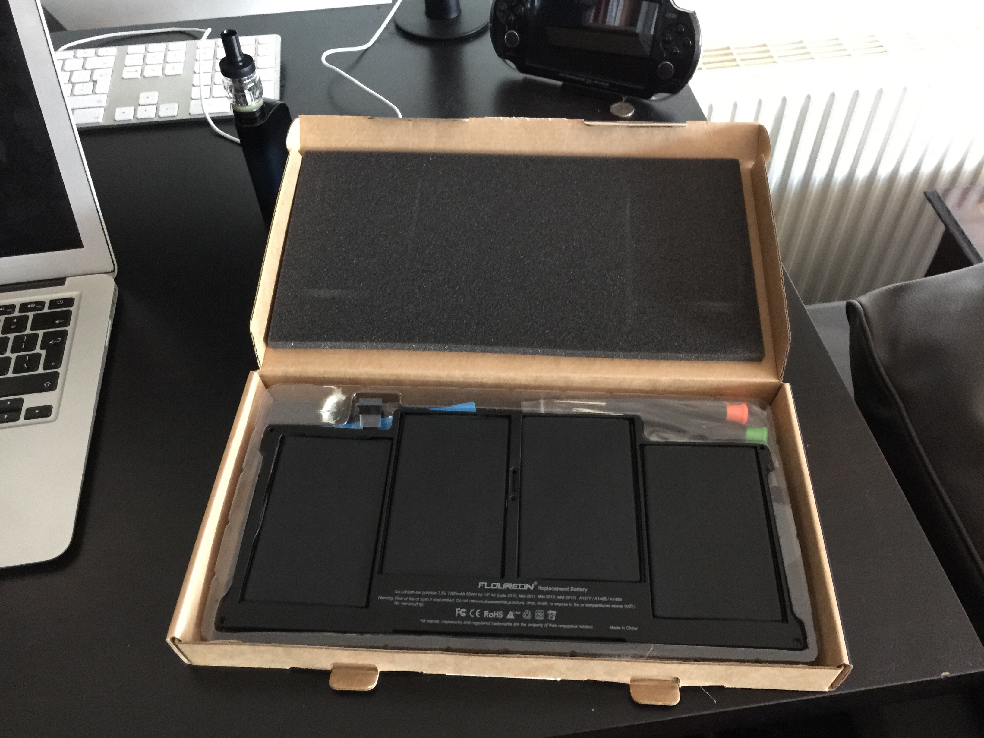 How to replace macbook air battery. I have a macbook air, its a 2012 13″ – the battery was awesome in the beginning, but after 4 years it was time to replace the battery. I ordered a flueron replacement from amazon prime and it arrived next day.