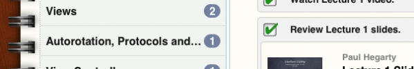 I’ve been using the stanford iOS course to try out the iTunes U app for both my iPad and my iPhone.