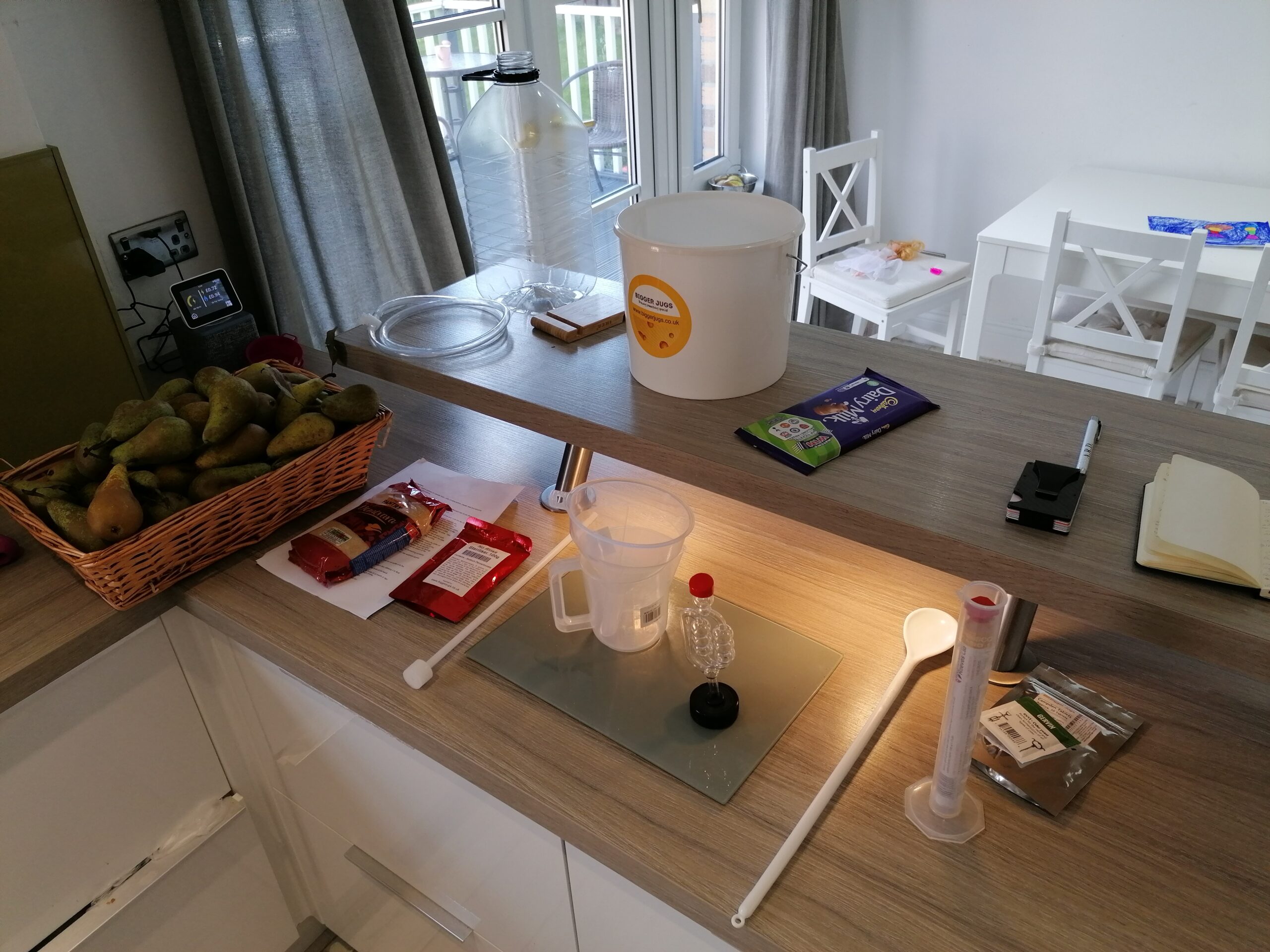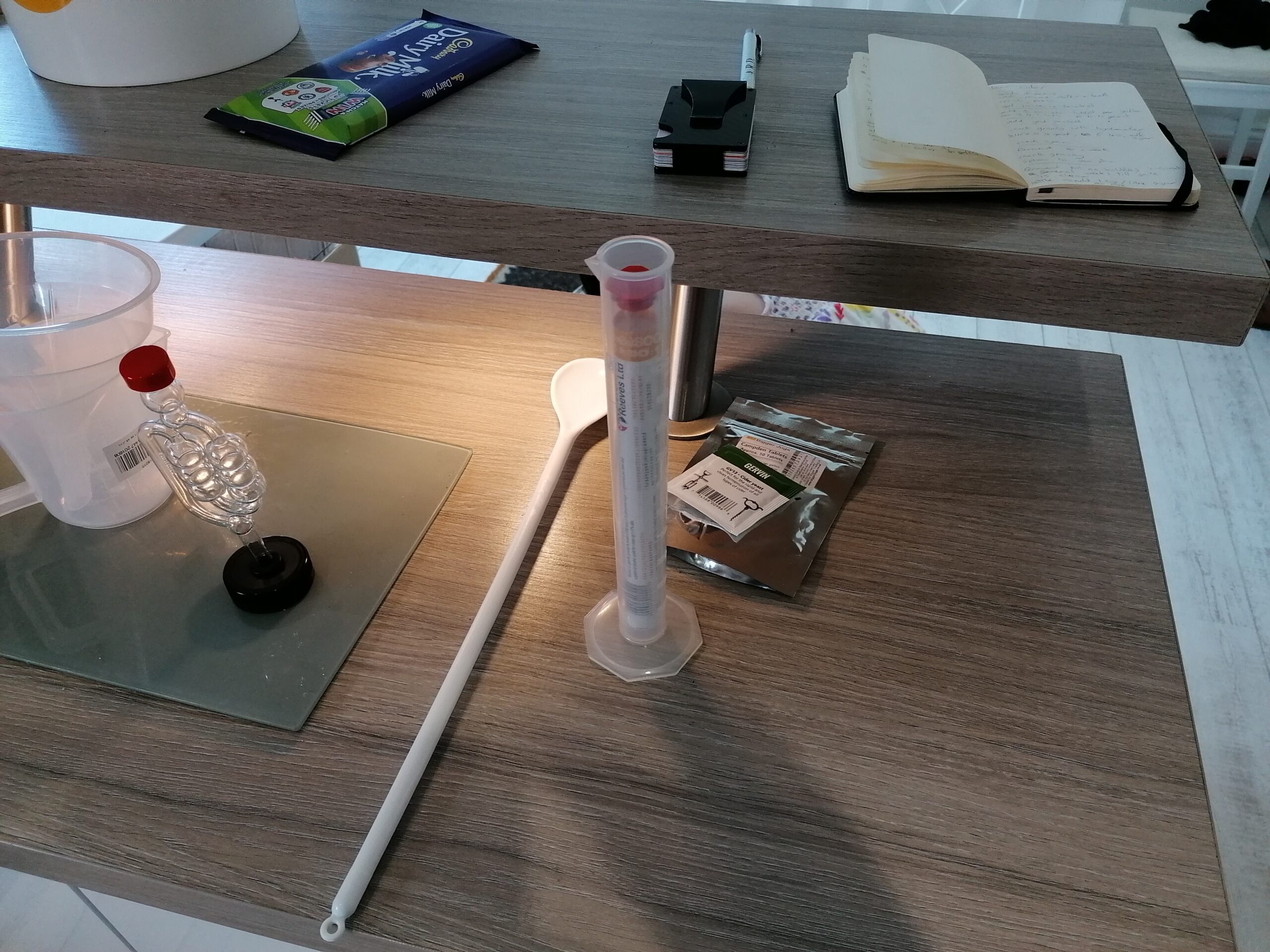 Making the cider was fairly easy: extract juice, add campden tablet, wait 24 hours, add extra sugar and yeast, leave till its all turned to alcohol.
