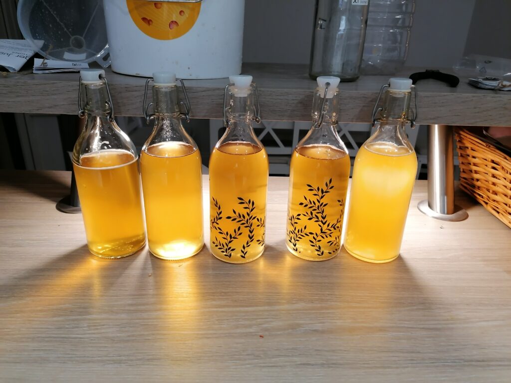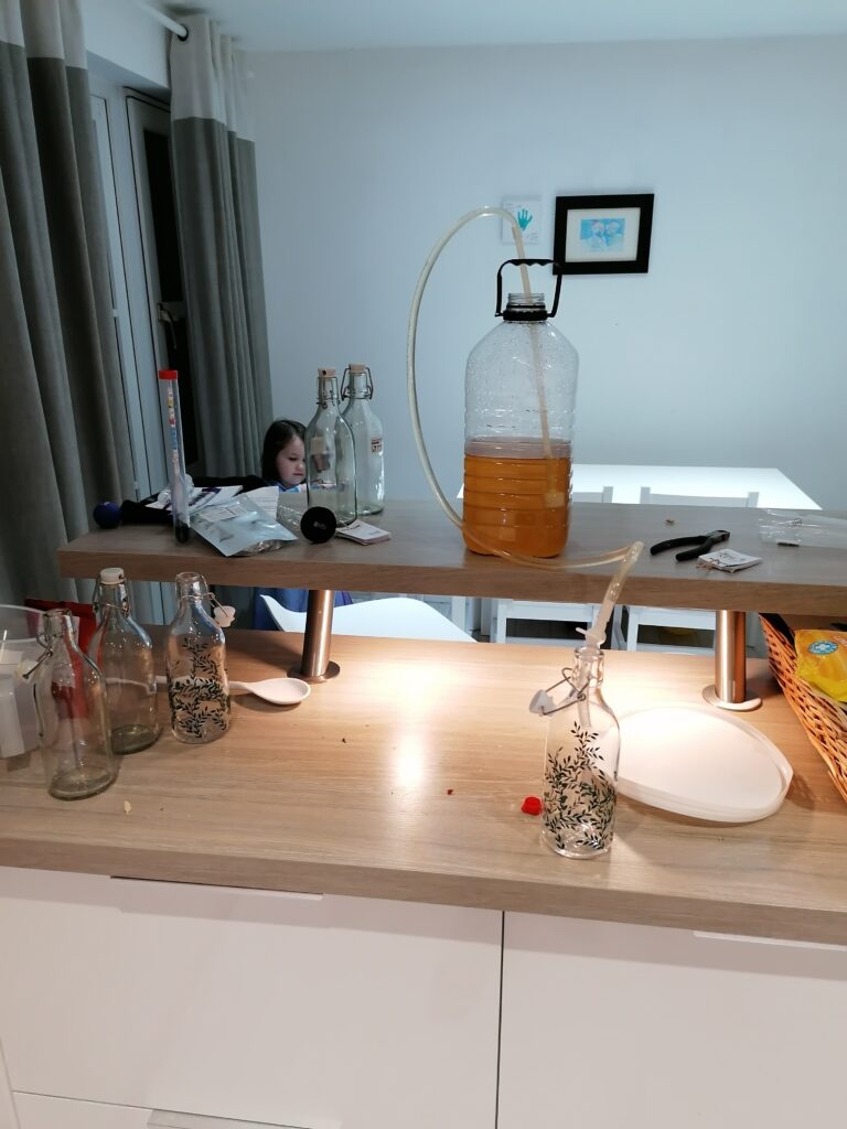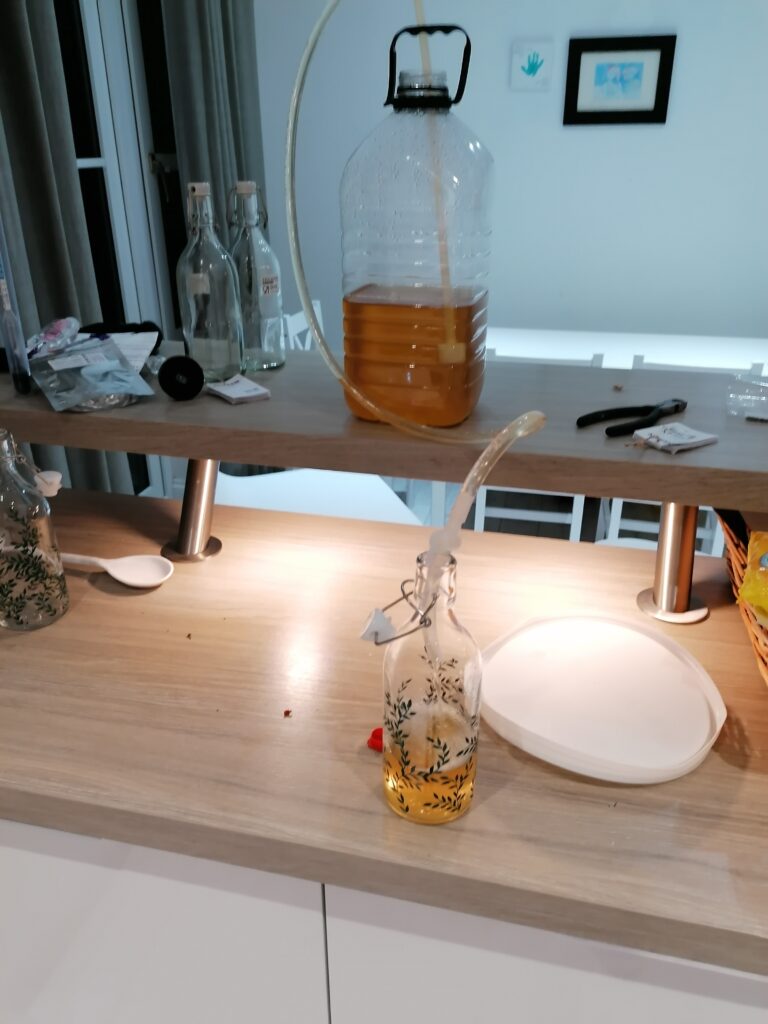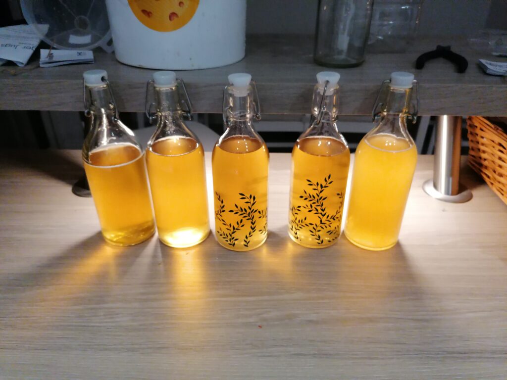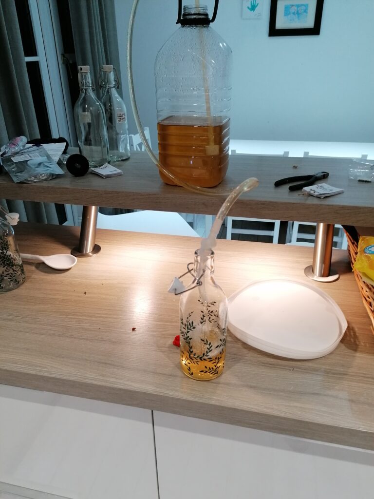 The bottling process was easy – I bought a reusable kit online which came with a syphoning hose and tap, and I got nice bottles from IKEA – before bottling, I added 1 teaspoon of sugar per bottle to add some fizz when they are opened.