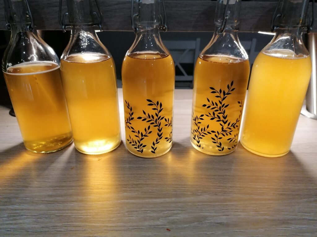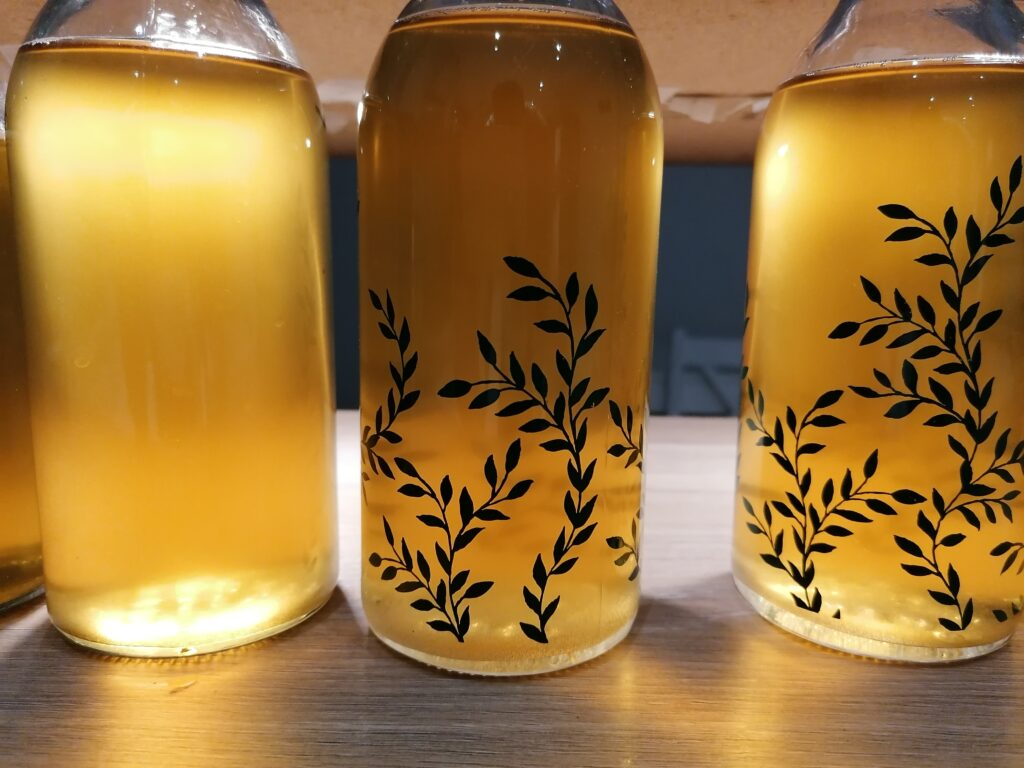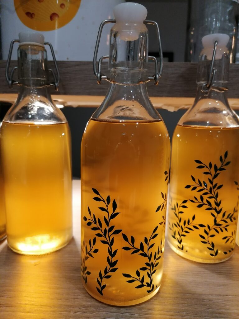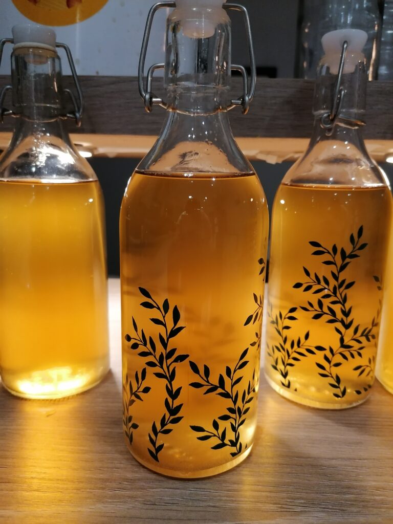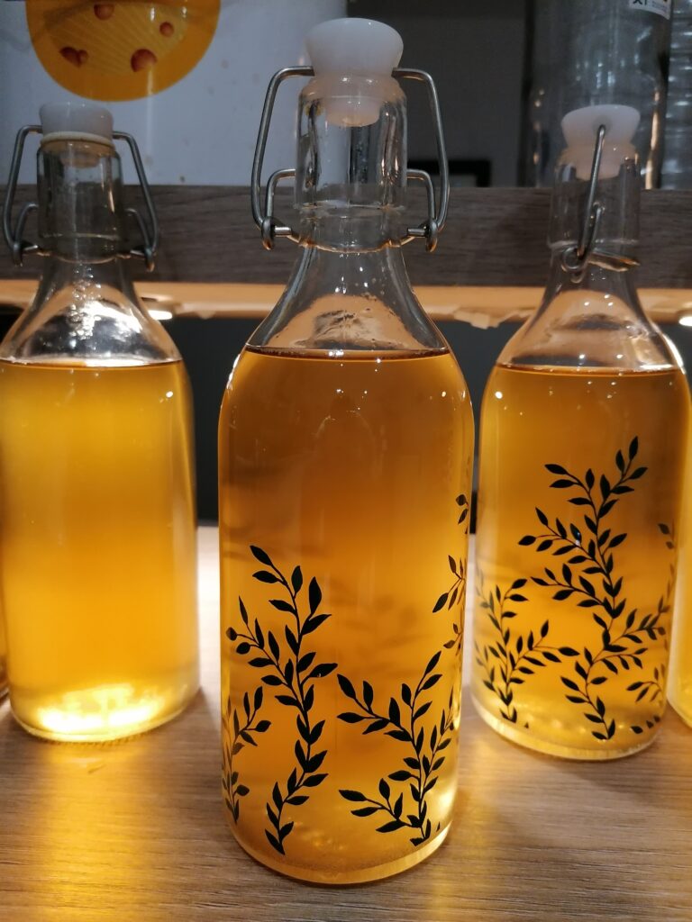 The bottling process was easy – I bought a reusable kit online which came with a syphoning hose and tap, and I got nice bottles from IKEA – before bottling, I added 1 teaspoon of sugar per bottle to add some fizz when they are opened.