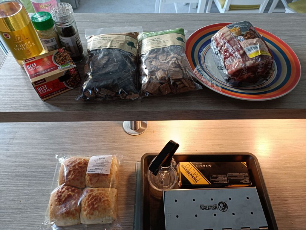 Im making a smoked brisket in my smoker today. Ive seasoned it with salt, pepper and garlic powder. it goes in the smoker with the temperature sensor till its at 63C. the spray bottle is half boiling water / half apple cider vinegar with a beef stock pot disolved in it. that gets skooshed on the meat every 30-45 mins.