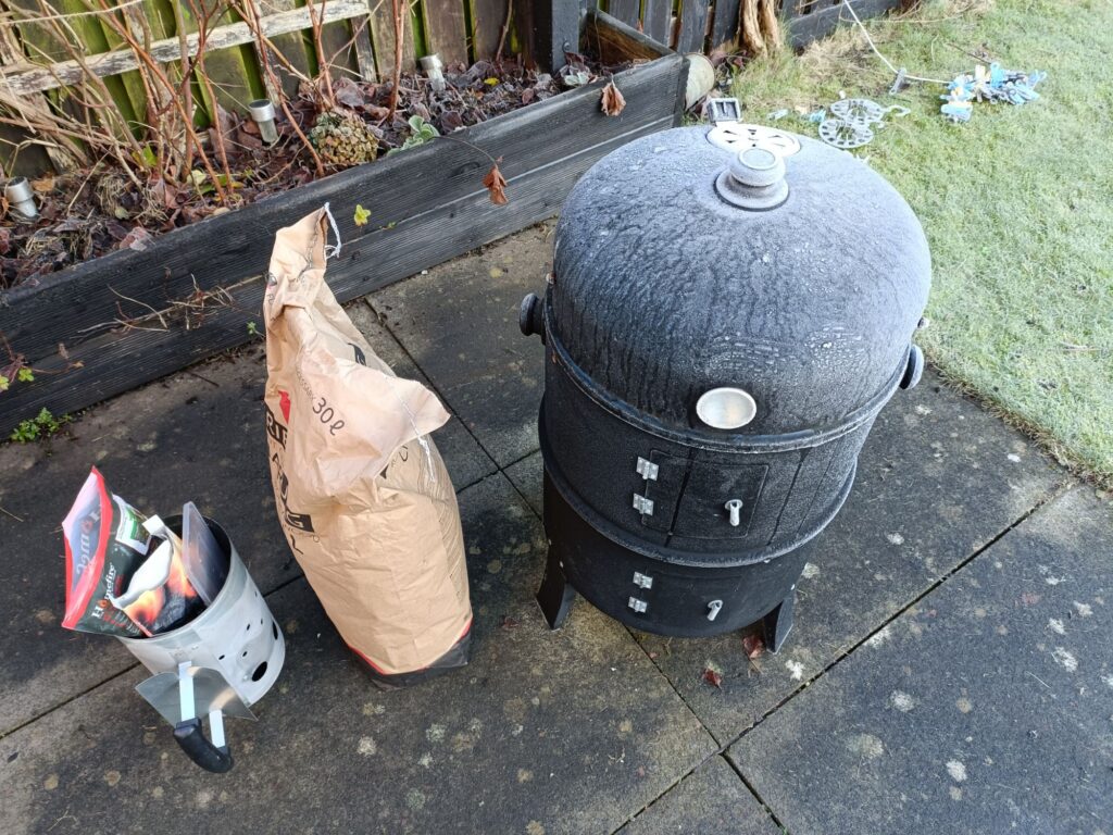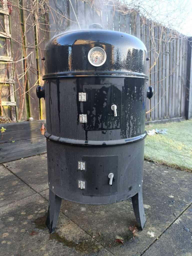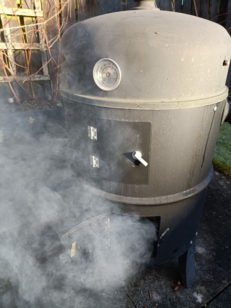 I kept it topped up with lumpwood charcoal and whisky barrel chips for 6.5 hours.