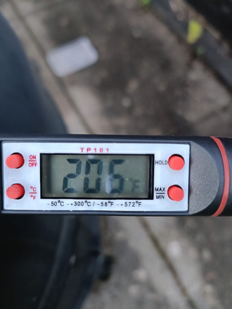 after that, it got cold and dark (its -1°C outside, so its icy on the decking and its very dark – the solar outdoor lights dont work well in the scottish winter.) So, I brought it in and put it in the oven.