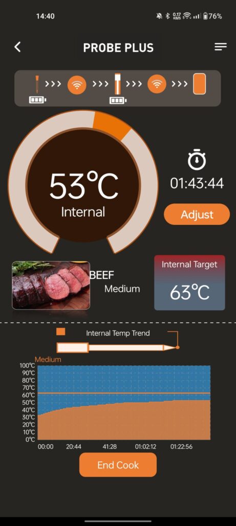 After about 30 mins it was all done (63°C internal temp for the meat – was aiming for medium)
